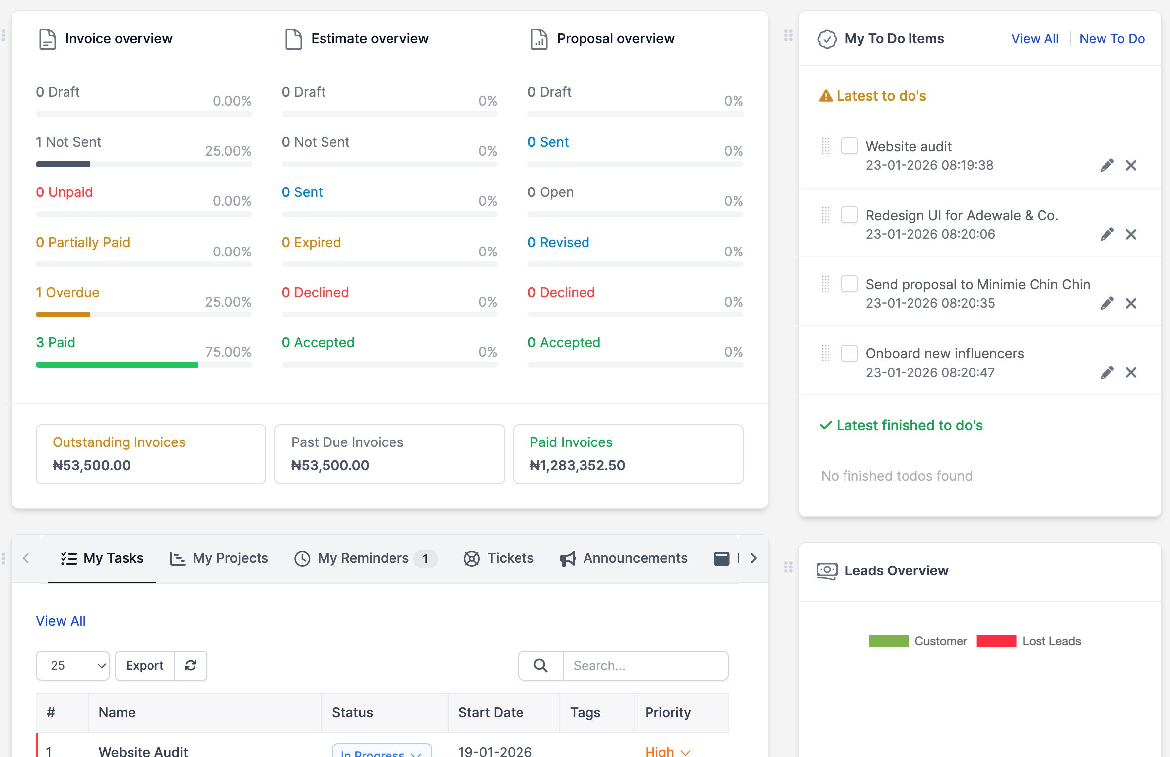 Manage your projects, proposals, invoices, payments, clients, team, support, accounting, sales team