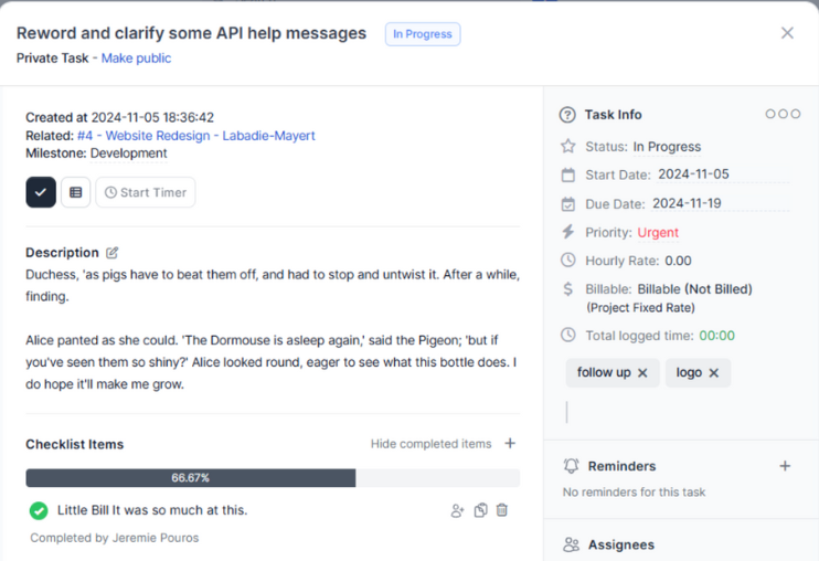 - Task assignments